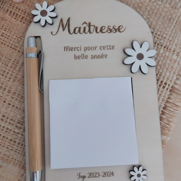 Bloc notes en bois pour cadeau maître cadeau maîtresse cadeau nounou atsem