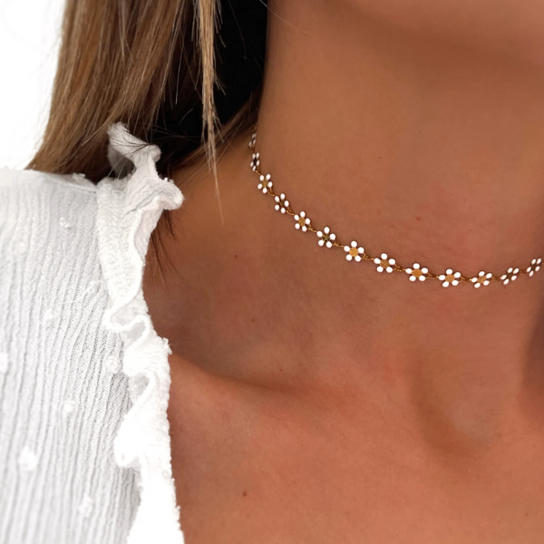 Notre tour de cou est doté d'une chaîne réglable avec des petites fleurs, au choix en deux coloris. Il est parfait à porter au quotidien ou lors d’occasions spéciales.